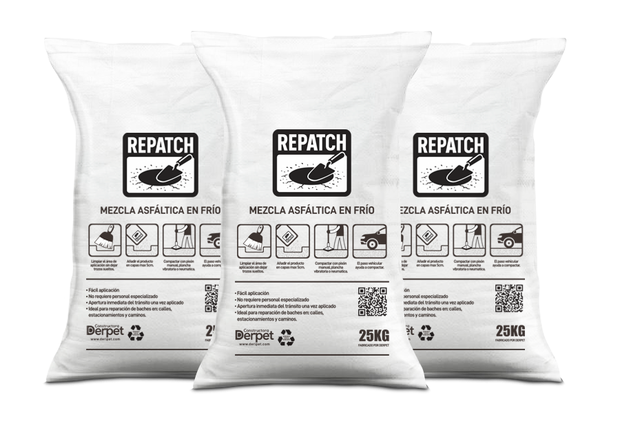 Es una mezcla asfáltica en frio lista para parcheo, que se puede utilizar para el mantenimiento y reparaciones de baches.