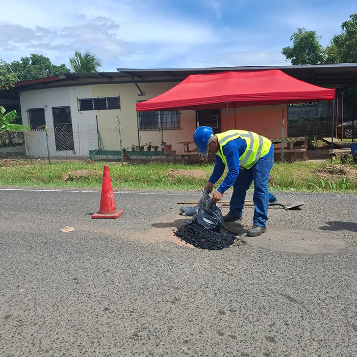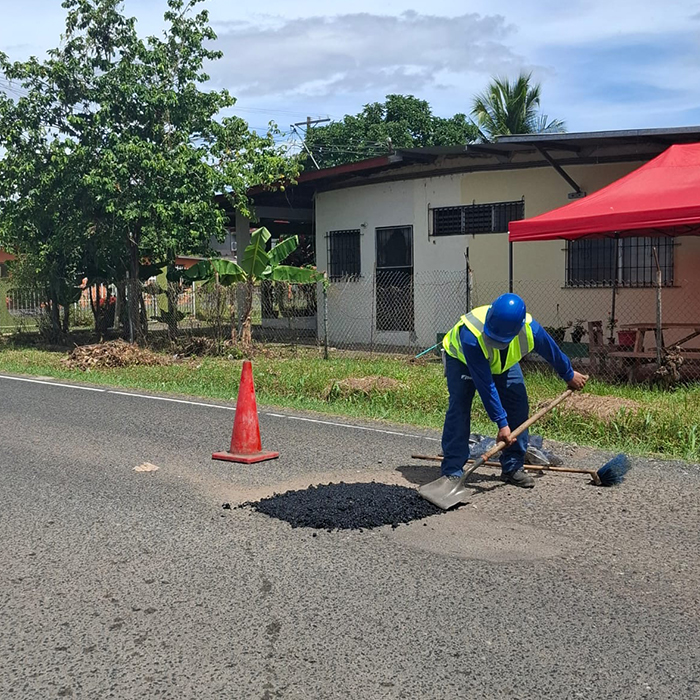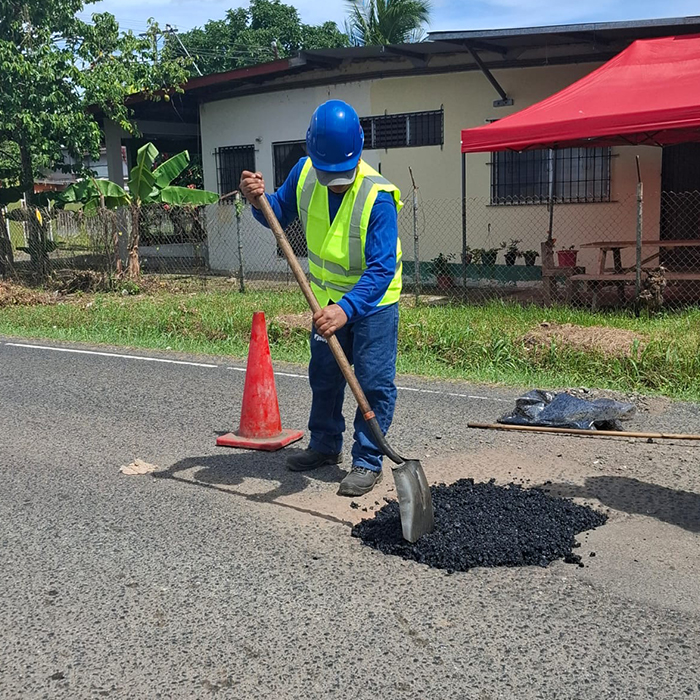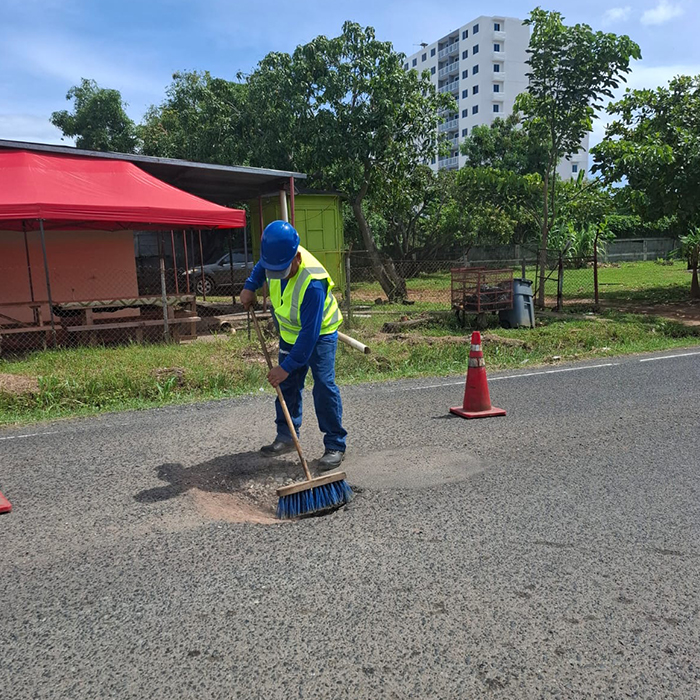 Limpiar el área de aplicación y cortar los bordes del bache con una pala o escoba asegurándose de quitar todo el agregado suelto del pavimento.